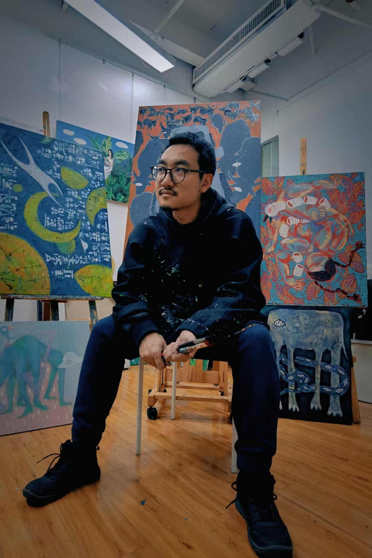 He graduated from Yunnan University with a degree in Painting and later obtained a Master’s degree in Ethnic Arts. His academic background and long-term artistic research have shaped a mature and independent creative direction.