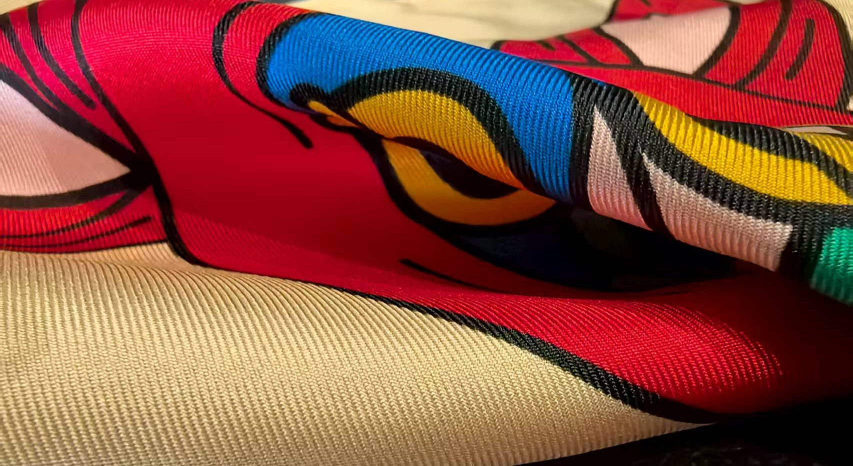 Luxurious Silk Texture: Crafted from 100% premium Chinese silk, this piece’s smooth, soft texture adds an extra layer of elegance and refinement to the vibrant design.